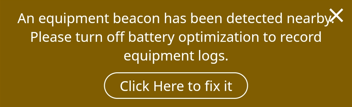 【Improvement】【BLE Equipment Log】Battery-optimization popup Added popup that notifies user the battery-optimization setting is ON, which needs to be turned off in order to record BLE equipment log accurately.